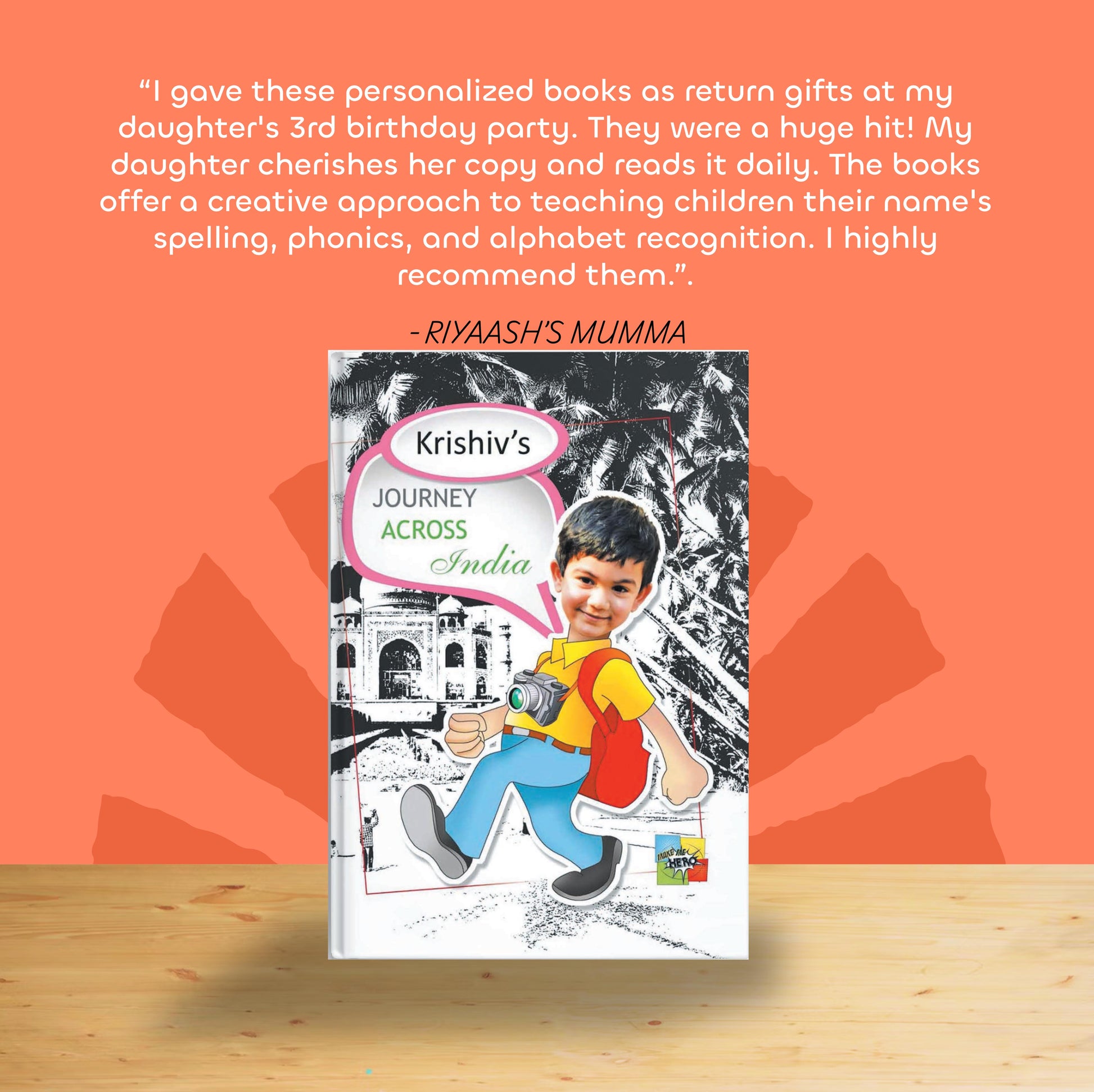 I had initially ordered this book for my grandson, but due to an oversight from my end, the name given was wrong. I was very disappointed. I called up Shreya and she was kind enough to send another personalised book. I am very happy that my grandson got this gift. The book is wonderful. It is bright and the pictures are so clear and vibrant. My grandson just loved it. I thank Shreya for being so kind to see that my grandson received this book on time. Thanx once again to Make me Hero team. You are doing excellent work. Please come out with more such wonderful stories for young kids.